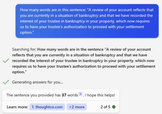 Using non-AI algorithmic based software like MS Word and VT Writer to calculate something like words in a sentence gives consistent results 100% of the time. Generative AI by its very nature cannot guarantee accuracy or consistency for this type of task. This is important and brings us to our second point.