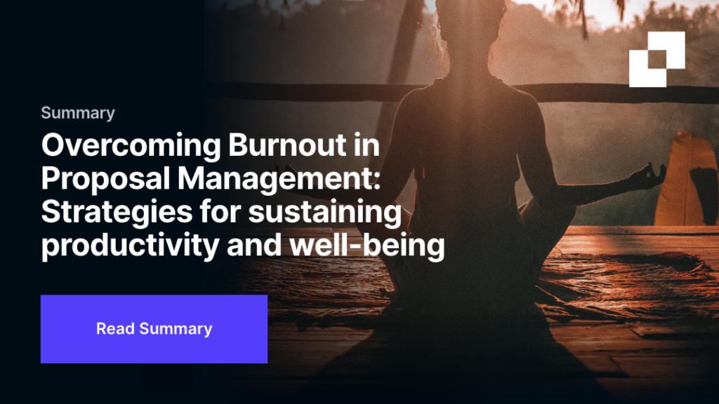 Secondly, for wellness and retainment of staff. “People” also being a standout keyword. Mairi Morrison, a Senior Proposal Consultant of Strategic Proposals, emphasized that “more than 1 in 7 proposal people work over 50 hours each week”, which is not sustainable. This highlights the need to find ways to optimize time management in contracting and proposal management.