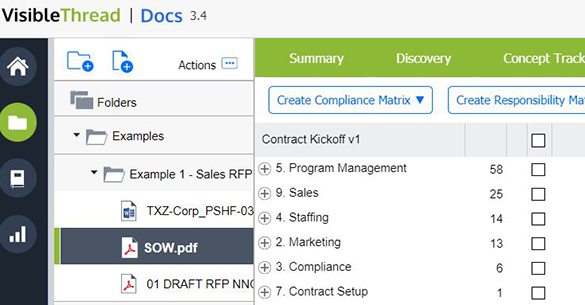 Using the Responsibility Matrix, you can easily see who needs to input to the bid. Previously, you would search through the solicitation, noting down who needs to contribute to the proposal.