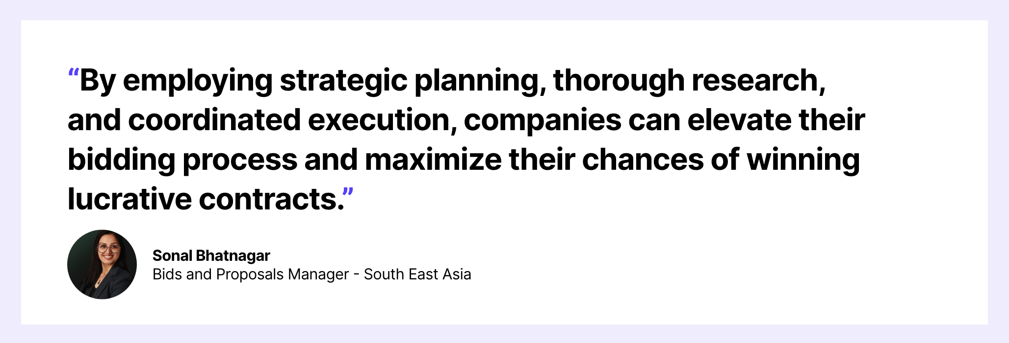 Strategic Bid Management for Qualification and Understanding: The bid management team collaborates closely with the sales team to qualify the opportunity and thoroughly understand the RFP requirements. This ensures a targeted proposal that highlights the company’s strengths and addresses the client’s needs effectively.