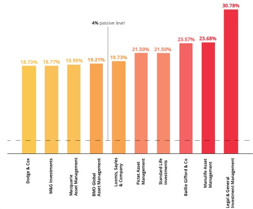 Let’s take a look at some concrete examples. In our recent asset management report, we found that 58 out of 60 firms analyzed communicate in an academic tone. 59 out of the 60 use overly complex words in their communications. 100% of the companies write sentences that are over the recommended length. One of the companies, Aviva Investors, published a report with a sentence containing 70 words: