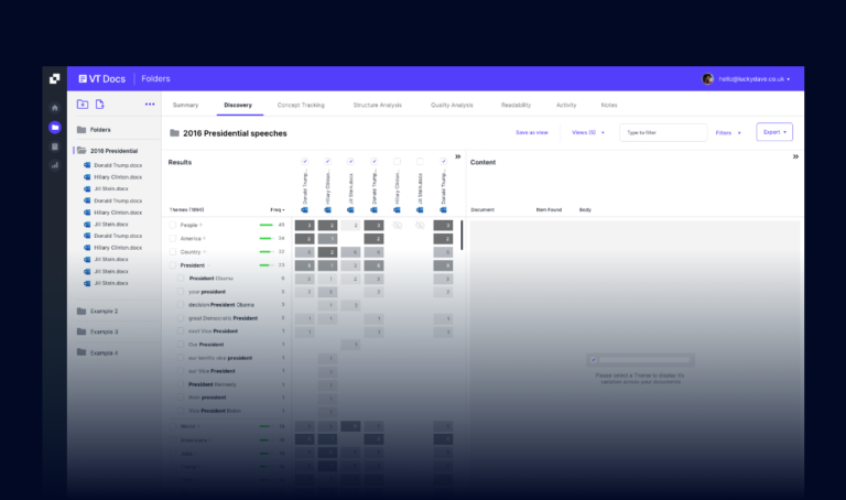 So, you can organize past contract documents in a folder, and with Discovery’s side-by-side comparison, identify trends. This brings essential insights from your contract history. Whether you seek specific language, compliance data, or performance metrics, Discovery streamlines the process. In short, it’s an invaluable resource for contract analysis – if we do say so ourselves.