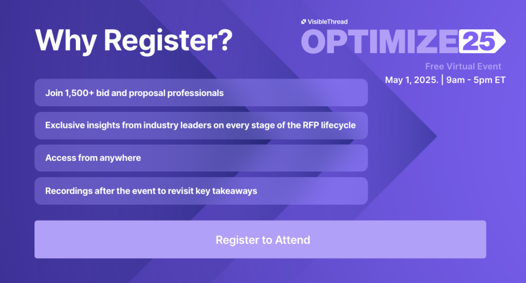 Looking ahead, we’re excited to continue fostering innovation and collaboration at Optimize25, VisibleThread’s flagship virtual event happening later this year. Optimize25 will bring together industry leaders to explore best practices, AI-driven efficiencies, and the future of bid & proposal management. We’d love for you to join us—find out more at: