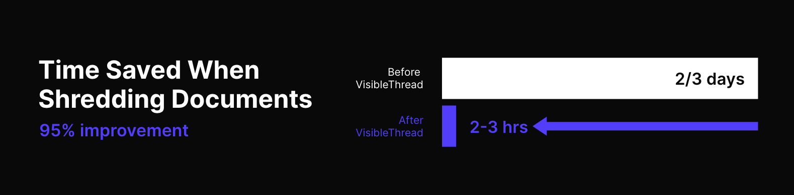 Our clients have experienced significant advancements across multiple departments since implementing VisibleThread’s software. The solution brings huge time savings, improved internal comms, brought alignment with company T&Cs, all while streamlining processes!