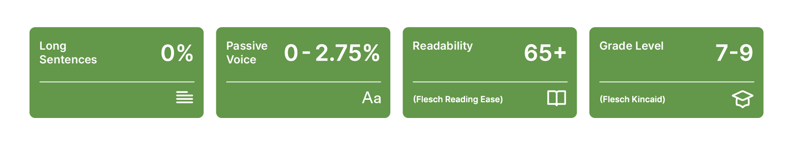 - Confidence in meeting user reading level requirements