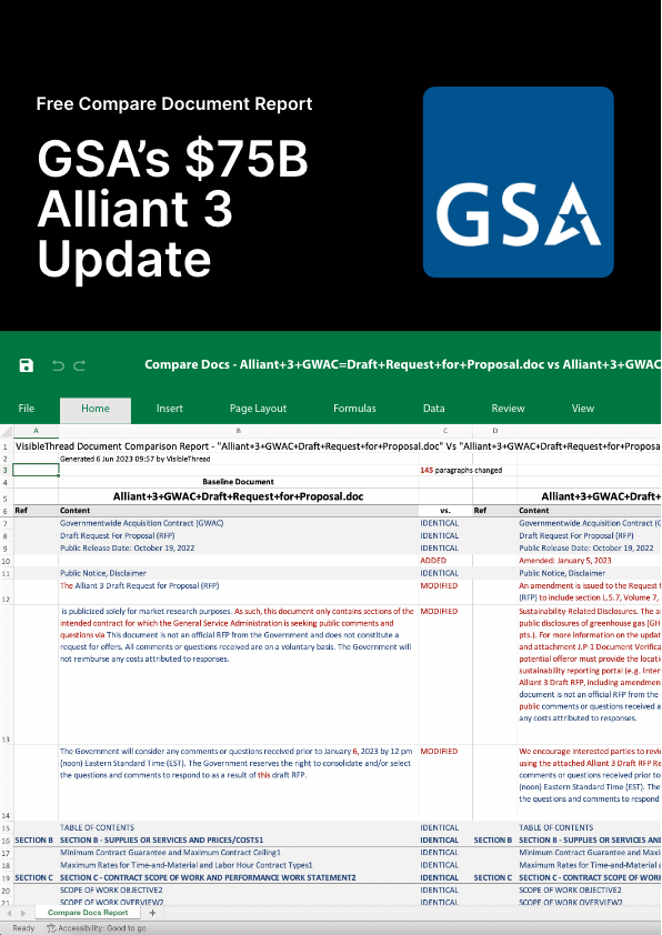 We wanted to save you time. We took the Alliant 3 RFP (sam.gov ID 47QTCB24R0009) and ran a shred/burst on the RFP using VT Docs. We shredded the doc fully sentence by sentence and highlighted key requirements.