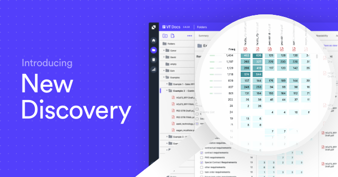 VisibleThread is delighted to announce the release of VT Docs 4.0 featuring New Discovery. Driven by artificial intelligence (AI), it automatically isolates key themes across multiple files spanning hundreds of pages to reduce risk.